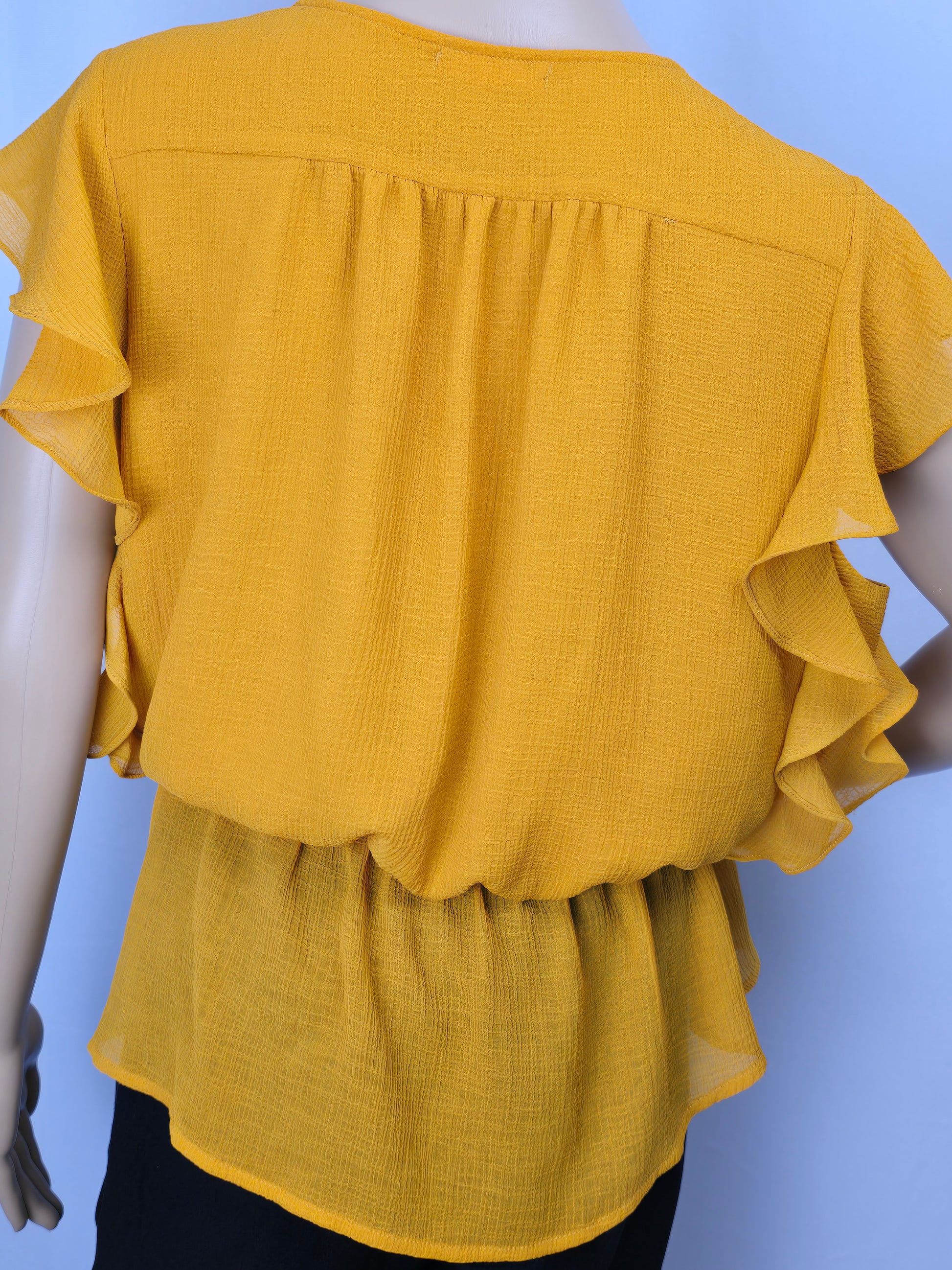 Le Lis Mango Coloured Flutter Sleeve Elastic Waist Top Size Medium Preloved