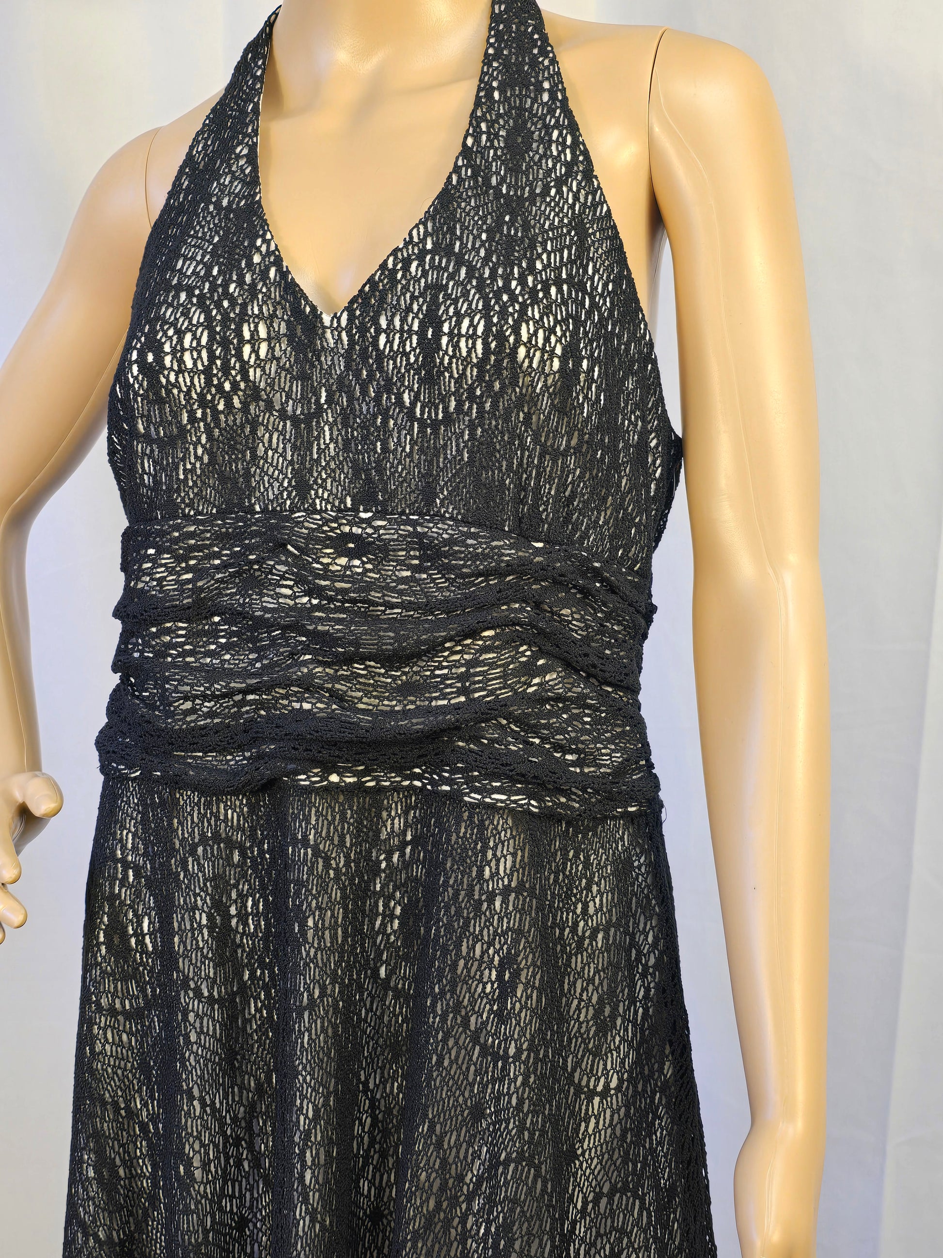 Get ready to turn heads with the Nine West Halter Dress! This fun and flirty dress is perfect for any occasion, from a beach wedding to a night out. The gathered waist and side zipper add a touch of elegance, while the lace overlay or nude slip provide a stunning finish. Made with 100% polyester, this dress is both comfortable and stylish. Take a risk and stand out in this bold and beautiful dress from Nine West!