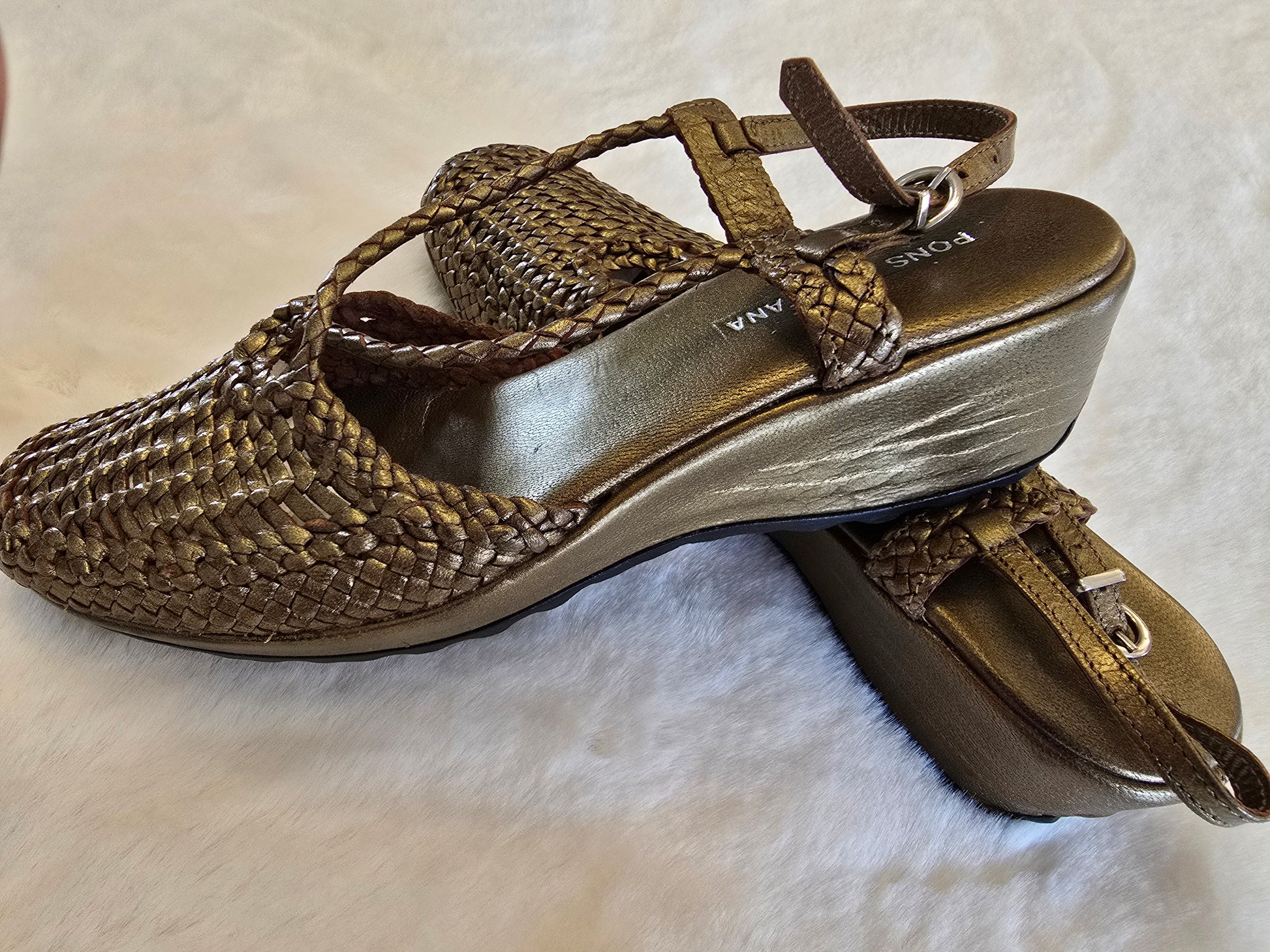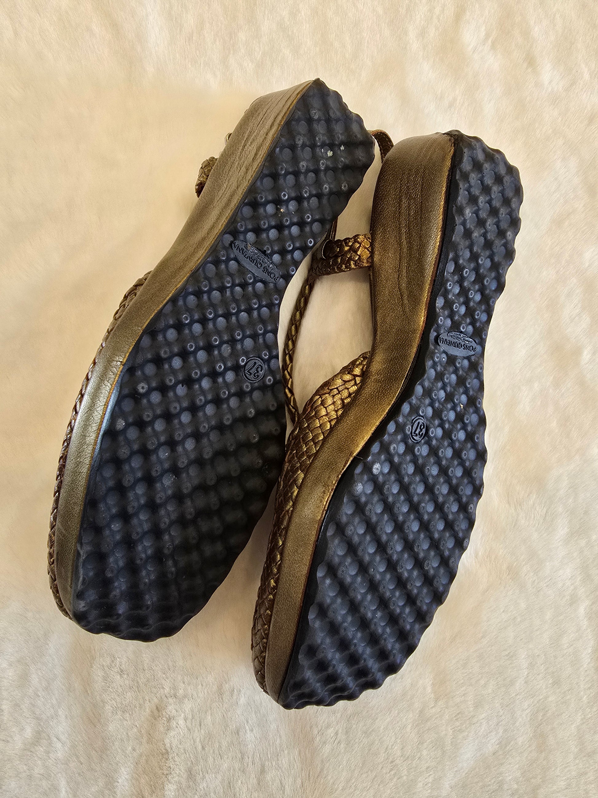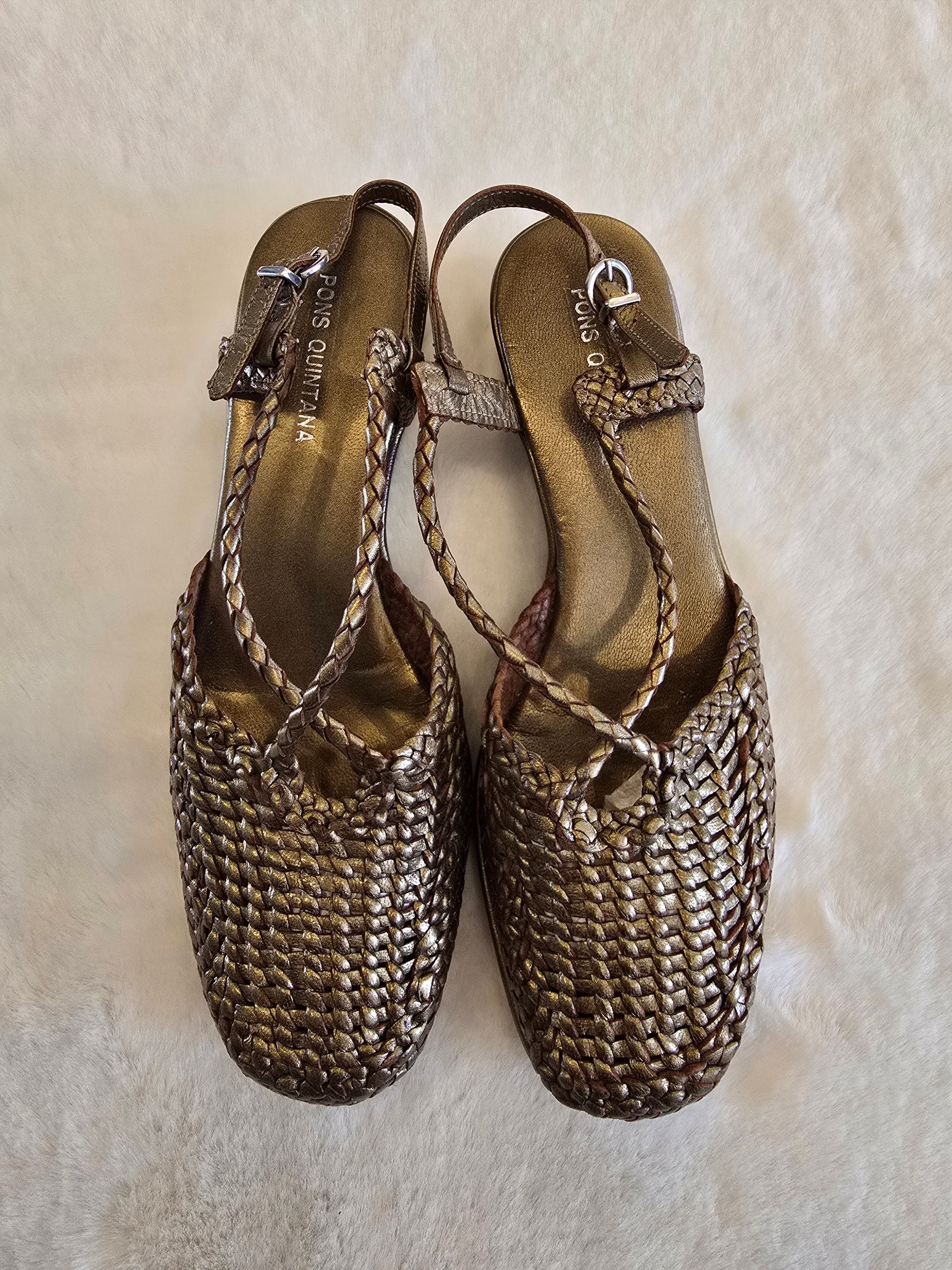 Pons Quintana Metallic Gold Closed Toe Sling Back Sandal Size 37