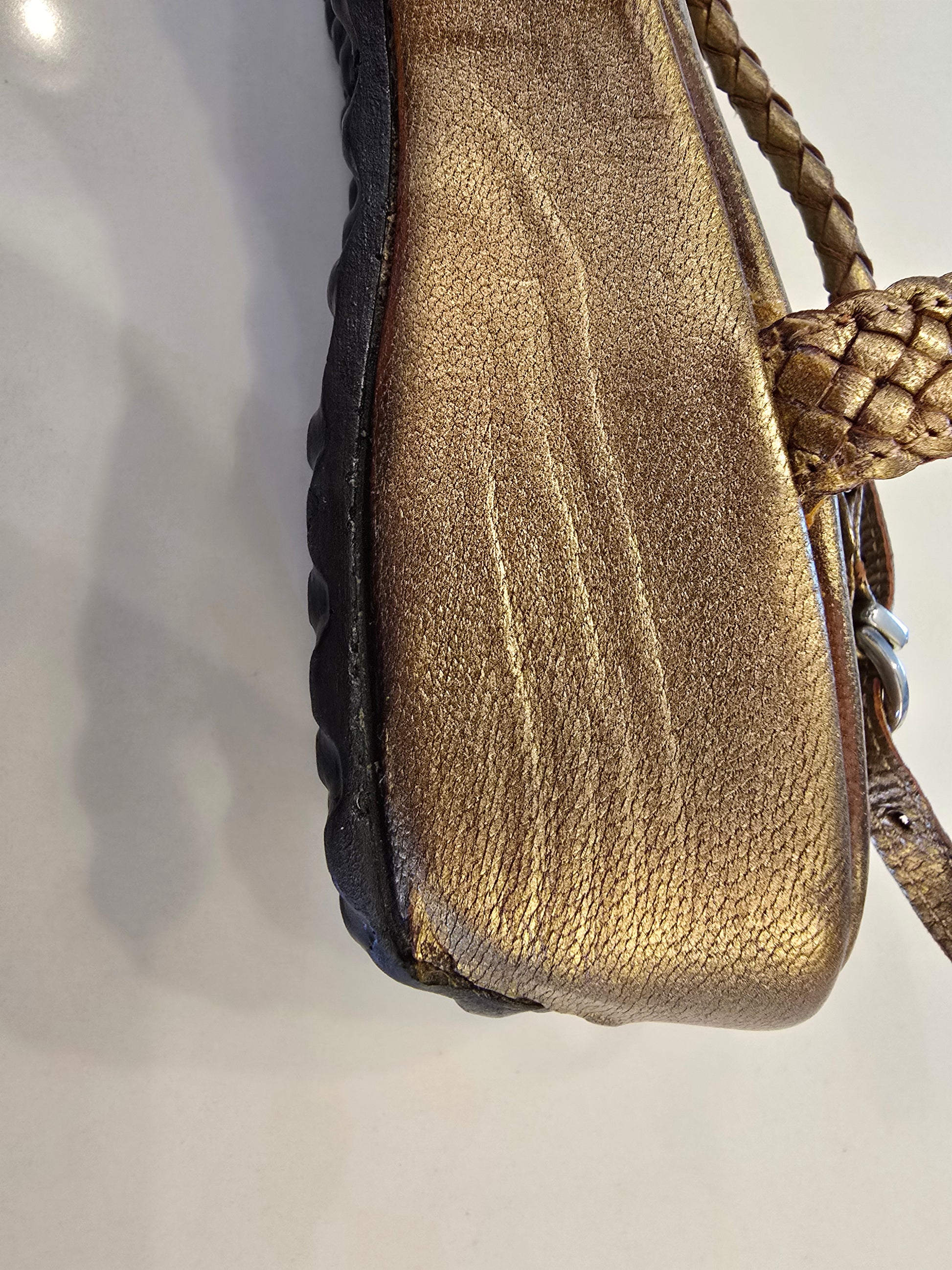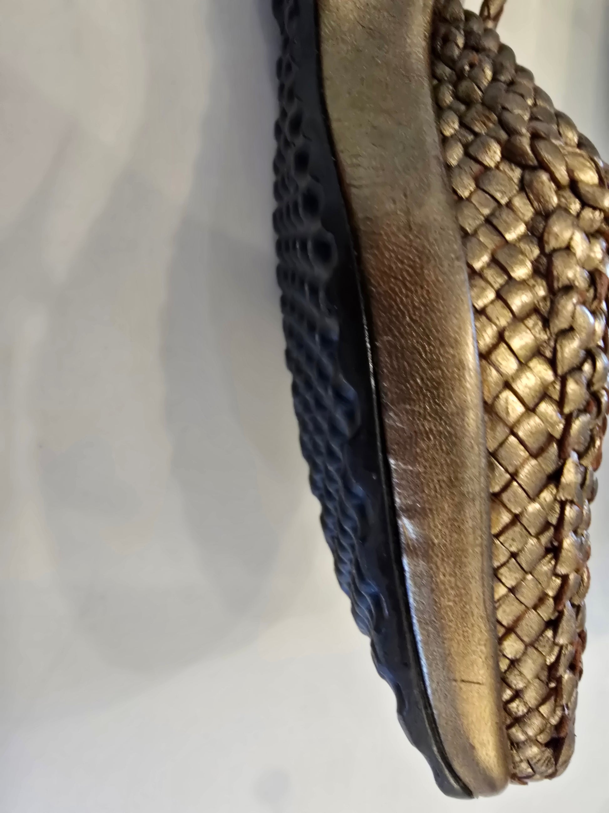 Pons Quintana Metallic Gold Closed Toe Sling Back Sandal Size 37. Sling back closed toe style shoe. Perfect for that European vacation or a day strolling the farmers market. Slight blemishes on side of shoe noted in pictures. Very minor wear. Soles are in excellent condition along with the upper shoe. Gorgeous leather upper.